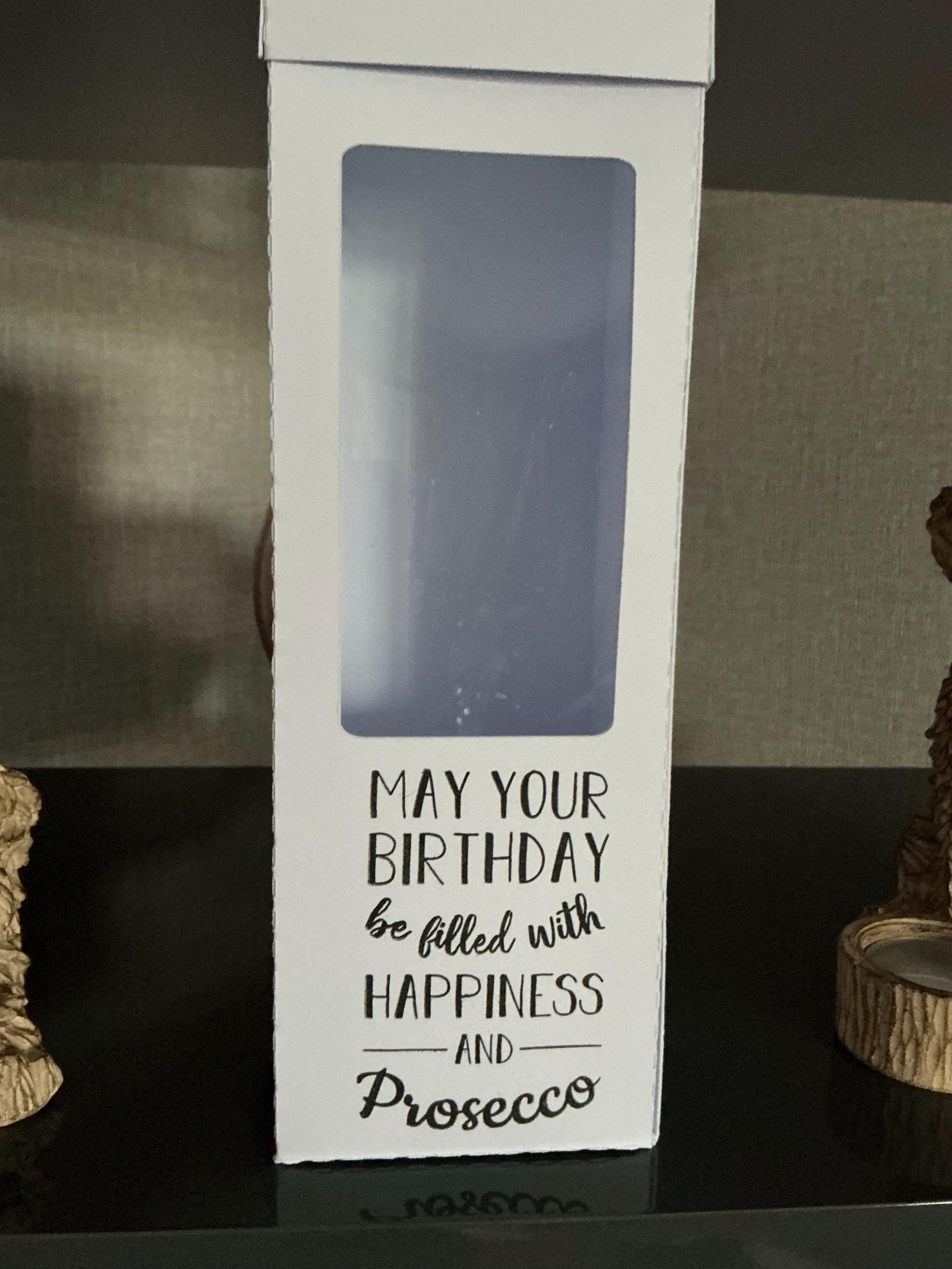 Betty was very helpful with my initial request to slightly amend the wording on a champagne flute box. The box arrived around 2 weeks after placing order. It is a flatpack and requires assembly. What I hadn’t realised is that you need to glue the edges together. It would have been useful to have known this as I had to go and buy some glue to do this. The assembly instructions I received were for a gin glass box not for a champagne flute box so were slightly different. Postage was almost as much as the box. All things considered I personally found the assembly fiddly and the box expensive for what it is.